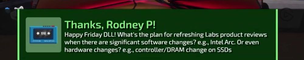 Happy Friday DLL! What's the plan for refreshing Labs product reviews when there are significant software changes? e.g., Intel Arc. Or even hardware changes? e.g., controller/DRAM change on SSDs