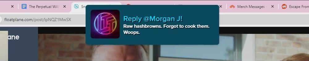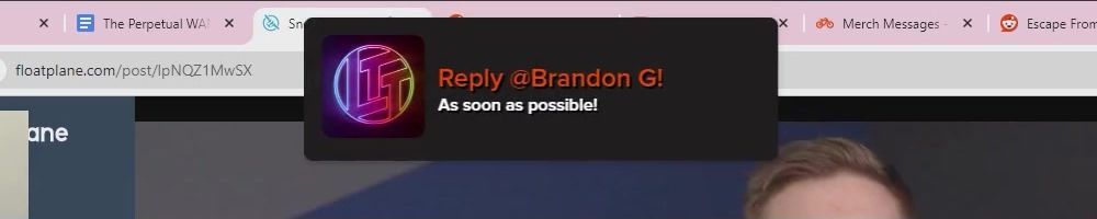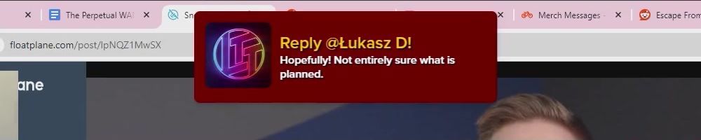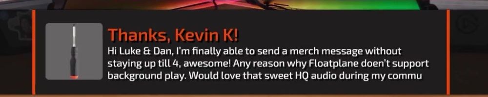 Hi Luke & Dan, I'm finally able to send a merch message without staying up till 4, awesome! Any reason why Floatplane doesn't support background play. Would love that sweet HQ audio during my commu