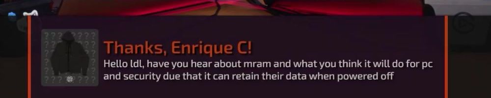 Hello ldl, have you hear about mram and what you think it will do for pc and security due that it can retain their data when powered off