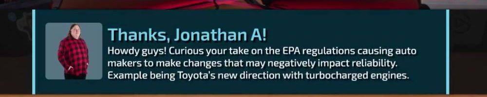 Howdy guys! Curious your take on the EPA regulations causing auto makers to make changes that may negatively impact reliability. Example being Toyota's new direction with turbocharged engines.