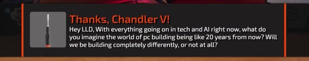 Hey LLD, With everything going on in tech and AI right now, what do you imagine the world of pc building being like 20 years from now? Will we be building completely differently, or not at all?
