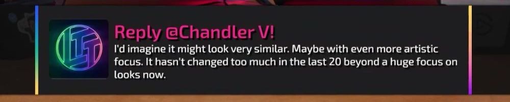 I'd imagine it might look very similar. Maybe with even more artistic focus. It hasn't changed too much in the last 20 beyond a huge focus on looks now.