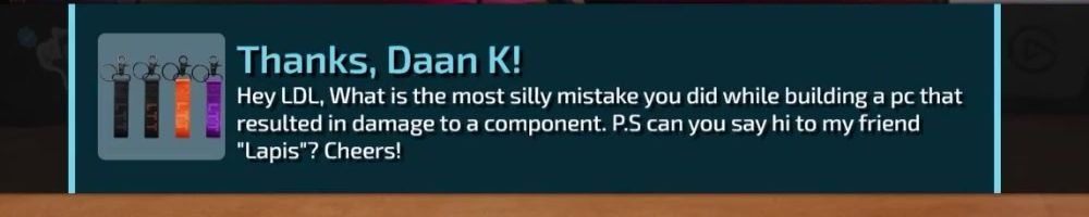 Hey LDL, What is the most silly mistake you did while building a pc that resulted in damage to a component. P.S can you say hi to my friend "Lapis"? Cheers!