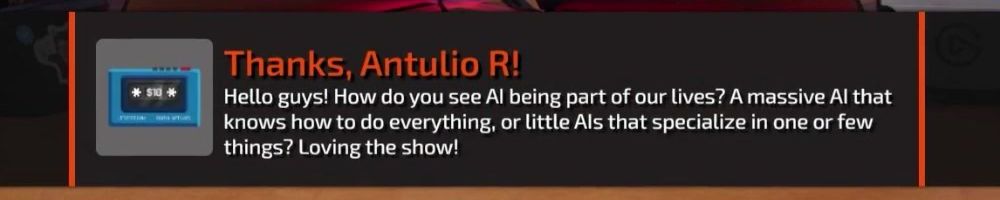 Hello guys! How do you see AI being part of our lives? A massive AI that knows how to do everything, or little AIs that specialize in one or few things? Loving the show!