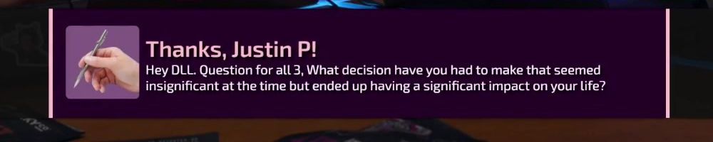 Hey DLL. Question for all 3, What decision have you had to make that seemed insignificant at the time but ended up having a significant impact on your life?