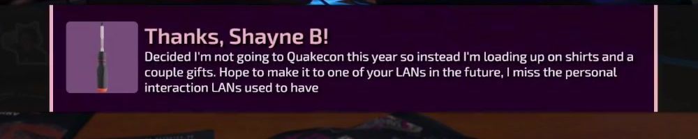 Decided I'm not going to Quakecon this year so instead I'm loading up on shirts and a couple gifts. Hope to make it to one of your LANs in the future, I miss the personal interaction LANs used to have