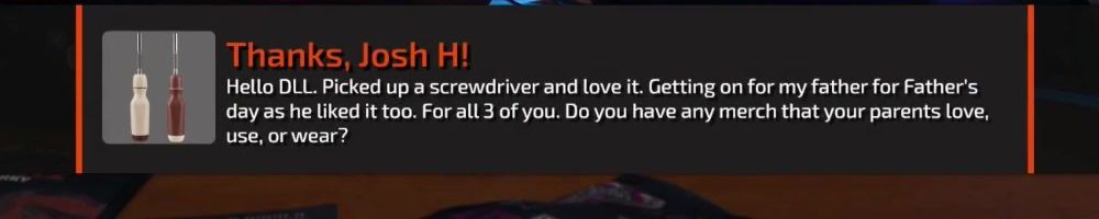 Hello DLL. Picked up a screwdriver and love it. Getting on for my father for Father's day as he liked it too. For all 3 of you. Do you have any merch that your parents love, use, or wear?