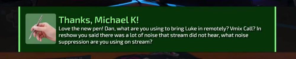 Love the new pen! Dan, what are you using to bring Luke in remotely? Vmix Call? In