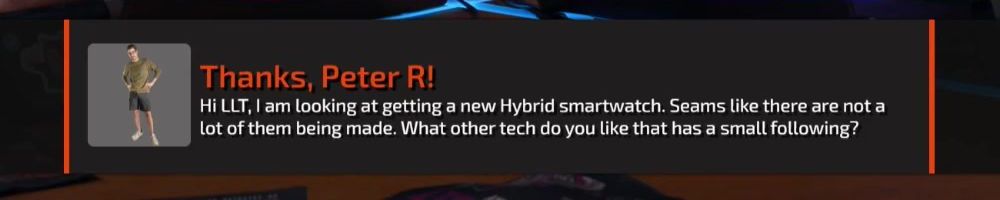 Hi LLT, I am looking at getting a new Hybrid smartwatch. Seams like there are not a lot of them being made. What other tech do you like that has a small following?