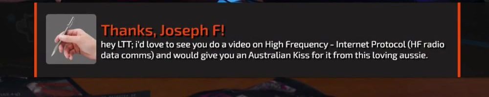hey LTT; i'd love to see you do a video on High Frequency - Internet Protocol (HF radio data comms) and would give you an Australian Kiss for it from this loving aussie.