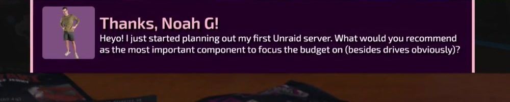 Heyo! I just started planning out my first Unraid server. What would you recommend as the most important component to focus the budget on (besides drives obviously)?