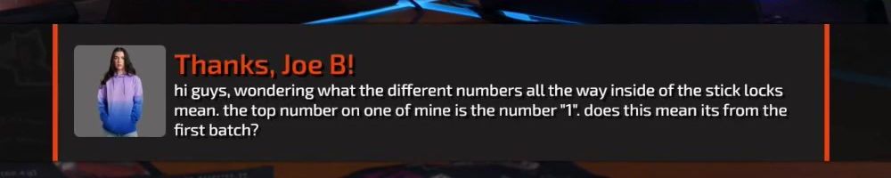 hi guys, wondering what the different numbers all the way inside of the stick locks mean. the top number on one of mine is the number "1". does this mean its from the first batch?