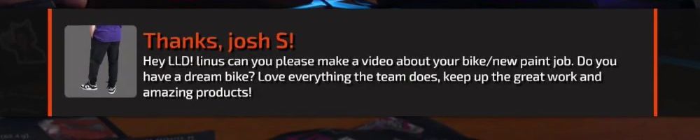 Hey LLD! linus can you please make a video about your bike/new paint job. Do you have a dream bike? Love everything the team does, keep up the great work and amazing products!