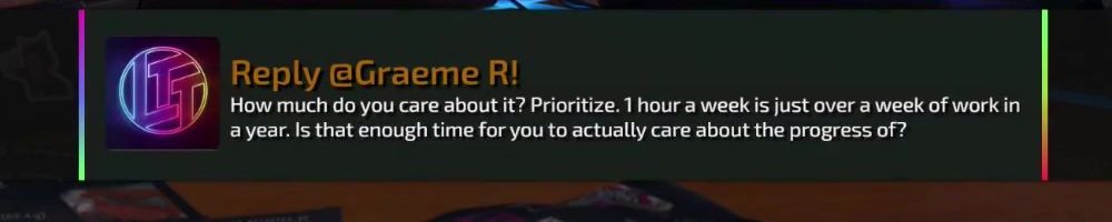 How much do you care about it? Prioritize. 1 hour a week is just over a week of work in