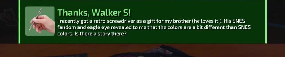 I recently got a retro screwdriver as a gift for my brother (he loves it!). His SNES fandom and eagle eye revealed to me that the colors are a bit different than SNES colors. Is there a story there?