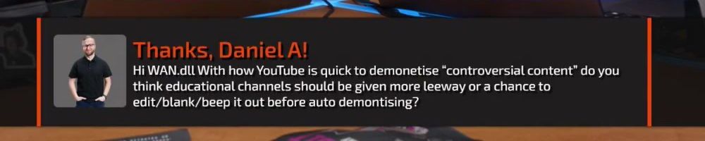 Hi WAN.dll With how YouTube is quick to demonetise "controversial content" do you think educational channels should be given more leeway or a chance to edit/blank/beep it out before auto demonetising?