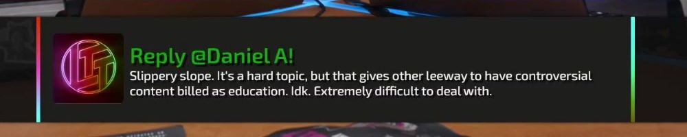 Slippery slope. It's a hard topic, but that gives other leeway to have controversial content billed as education. Idk. Extremely difficult to deal with.