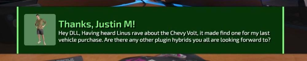 Hey DLL, Having heard Linus rave about the Chevy Volt, it made find one for my last