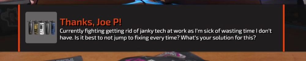 Currently fighting getting rid of janky tech at work as I'm sick of wasting time I don't have. Is it best to not jump to fixing every time? What's your solution for this?