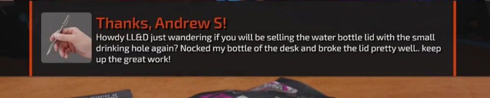 Howdy LL&D just wandering if you will be selling the water bottle lid with the small drinking hole again? Nocked my bottle of the desk and broke the lid pretty well.. keep up the great work!
