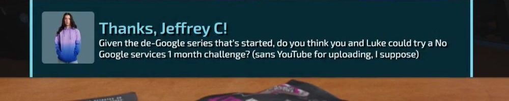 Given the de-Google series that's started, do you think you and Luke could try a No Google services 1 month challenge? (sans YouTube for uploading, I suppose)
