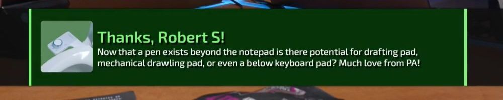 Now that a pen exists beyond the notepad is there potential for drafting pad, mechanical drawling pad, or even a below keyboard pad? Much love from PA!
