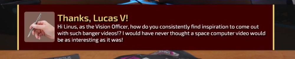 Hi Linus, as the Vision Officer, how do you consistently find inspiration to come out with such banger videos!? I would have never thought a space computer video would be as interesting as it was!