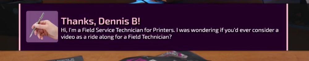 Hi, I'm a Field Service Technician for Printers. I was wondering if you'd ever consider a video as a ride along for a Field Technician?