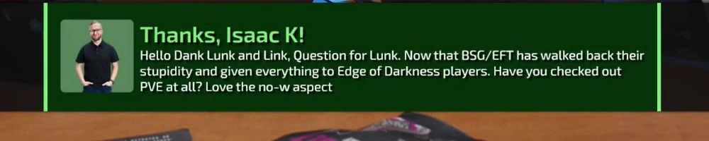 Hello Dank Lunk and Link, Question for Lunk. Now that BSG/EFT has walked back their