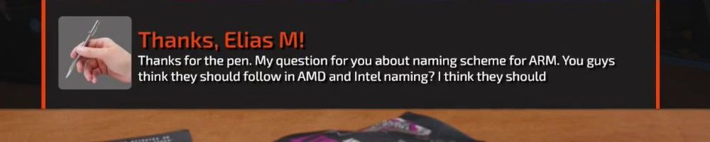 Thanks for the pen. My question for you about naming scheme for ARM. You guys think they should follow in AMD and Intel naming? I think they should