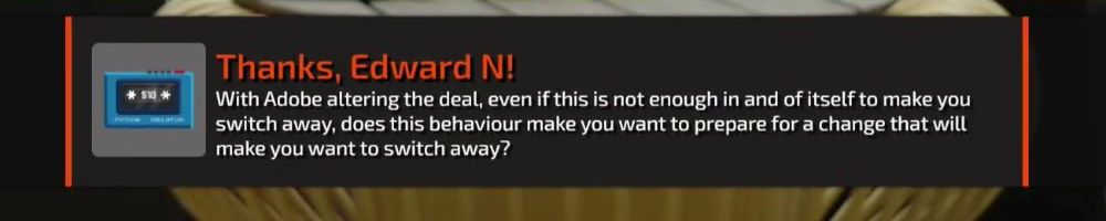 With Adobe altering the deal, even if this is not enough in and of itself to make you switch away, does this behaviour make you want to prepare for a change that will make you want to switch away?