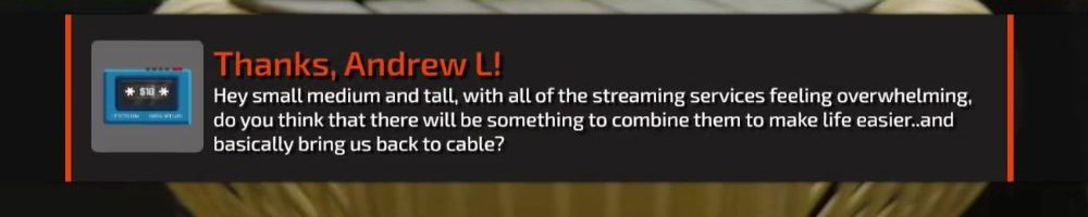 Hey small medium and tall, with all of the streaming services feeling overwhelming, do you think that there will be something to combine them to make life easier..and basically bring us back to cable?