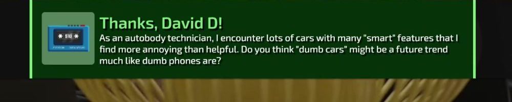 As an autobody technician, I encounter lots of cars with many "smart" features that I find more annoying than helpful. Do you think "dumb cars" might be a future trend much like dumb phones are?