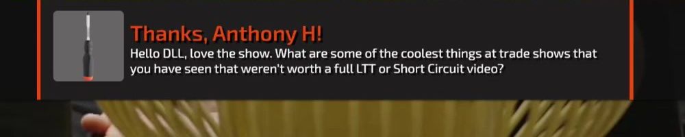 Hello DLL, love the show. What are some of the coolest things at trade shows that you have seen that weren't worth a full LTT or Short Circuit video?