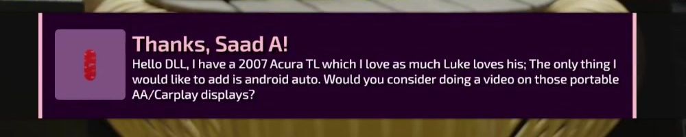 Hello DLL, I have a 2007 Acura TL which I love as much Luke loves his; The only thing I would like to add is android auto. Would you consider doing a video on those portable AA/Carplay displays?