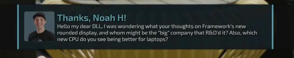 Hello my dear DLL, I was wondering what your thoughts on Framework's new rounded display, and whom might be the "big" company that R&D'd it? Also, which new CPU do you see being better for laptops?