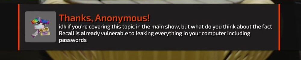 idk if you're covering this topic in the main show, but what do you think about the fact Recall is already vulnerable to leaking everything in your computer including passwords