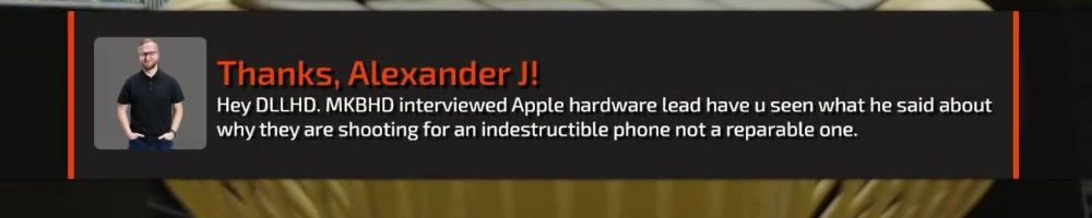 Hey DLLHD. MKBHD interviewed Apple hardware lead have u seen what he said about why they are shooting for an indestructible phone not a reparable one.
