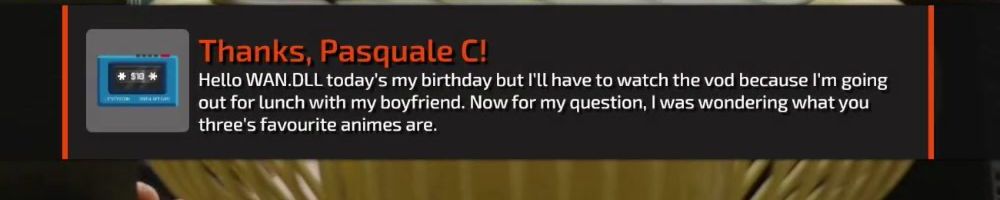 Hello WAN.DLL today's my birthday but I'l have to watch the vod because I'm going