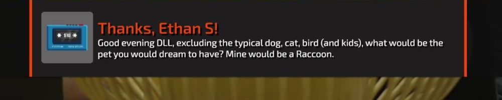 Good evening DLL, excluding the typical dog, cat, bird (and kids), what would be the pet you would dream to have? Mine would be a Raccoon.