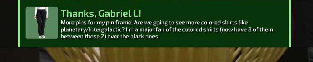 More pins for my pin frame! Are we going to see more colored shirts like planetary/Intergalactic? I'm a major fan of the colored shirts (now have 8 of them between those 2) over the black ones.