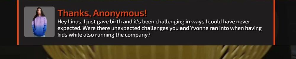Hey Linus, I just gave birth and it's been challenging in ways I could have never expected. Were there unexpected challenges you and Yvonne ran into when having kids while also running the company?