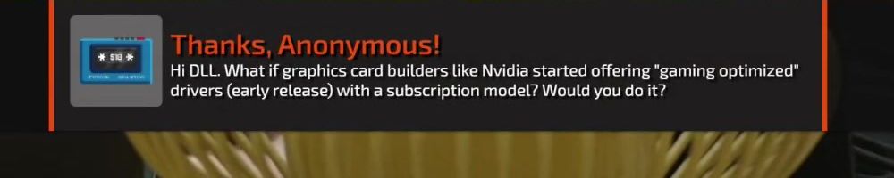 Hi DLL. What if graphics card builders like Nvidia started offering "gaming optimized" drivers (early release) with a subscription model? Would you do it?