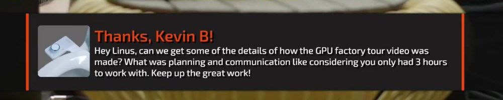 Hey Linus, can we get some of the details of how the GPU factory tour video was made? What was planning and communication like considering you only had 3 hours to work with. Keep up the great work!