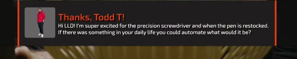 Hi LLD! I'm super excited for the precision screwdriver and when the pen is restocked. If there was something in your daily life you could automate what would it be?