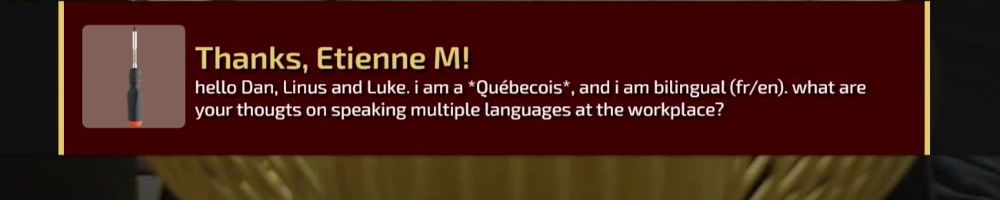 hello Dan, Linus and Luke. i am a *Québecois*, and i am bilingual (fr/en). what are your thougts on speaking multiple languages at the workplace?