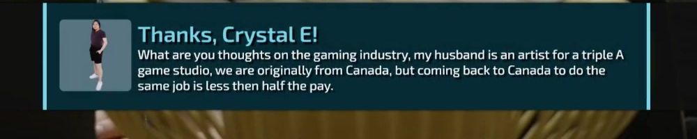 What are you thoughts on the gaming industry, my husband is an artist for a triple A game studio, we are originally from Canada, but coming back to Canada to do the same job is less then half the pay.