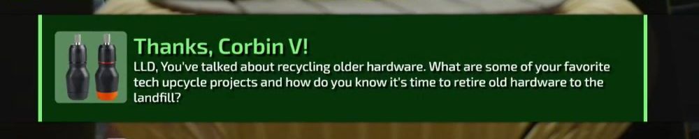 LLD, You've talked about recycling older hardware. What are some of your favorite
