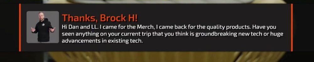 Hi Dan and LL. I came for the Merch, I came back for the quality products. Have you seen anything on your current trip that you think is groundbreaking new tech or huge advancements in existing tech.