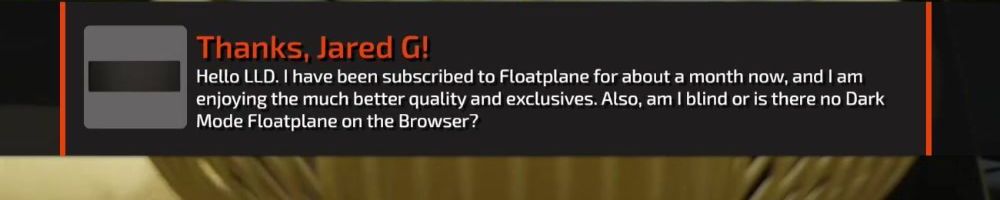 Hello LLD. I have been subscribed to Floatplane for about a month now, and I am enjoying the much better quality and exclusives. Also, am I blind or is there no Dark Mode Floatplane on the Browser?